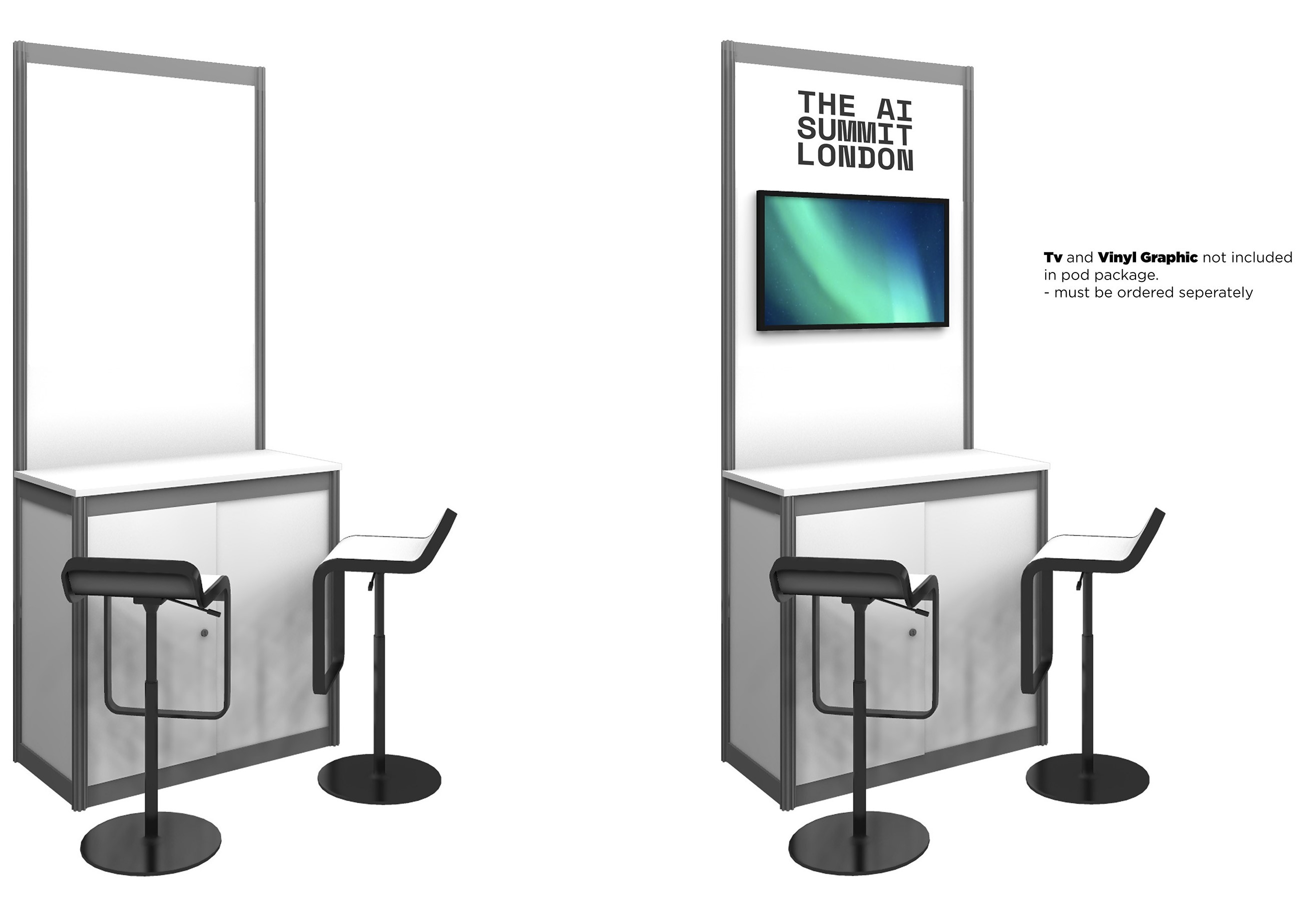 - Additions to your shell scheme stand, such as branding, storage, additional power, lighting, shelving, or reinforcement of panels to mount TV screens