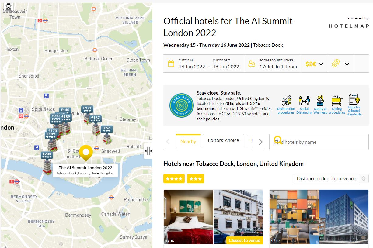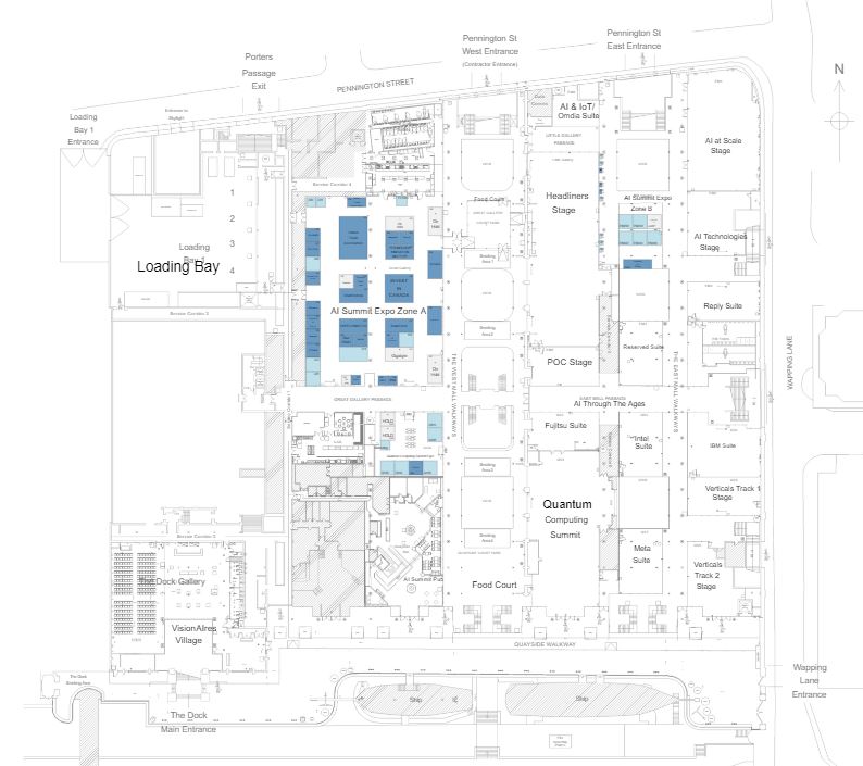 IMPORTANT: external food is not permitted on site, even during set up and breakdown. There will be catering stations around the venue during the event, plus the AI Summit Pub where you can grab a drink or a bite to eat. If you require catering for your exhibition stand or hospitality suite, then you should arrange this through the onsite catering team Tobacco Dock Food. They have a wide range of offerings to suit all needs, but we recommend you start these conversations early to ensure supply.